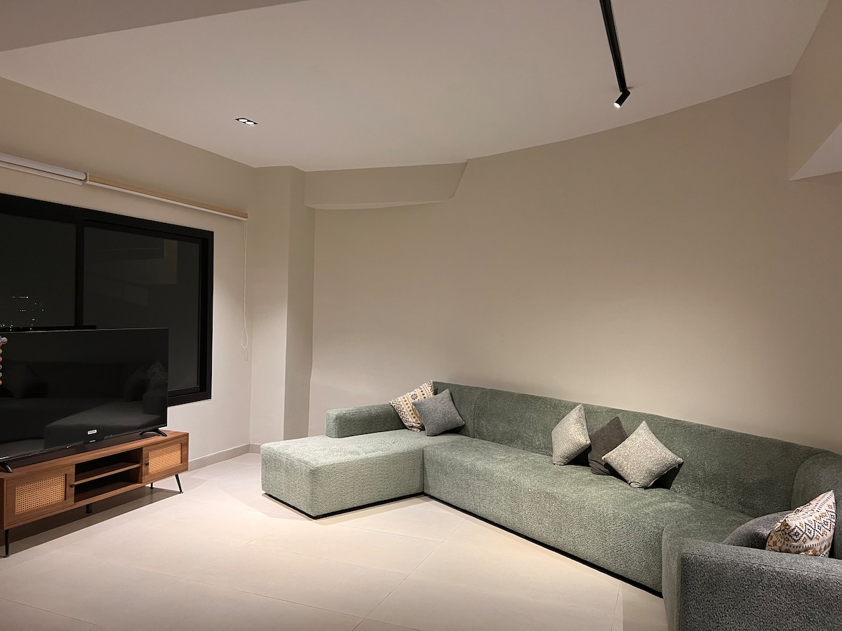 Experience unparalleled luxury in this uniquely designed apartment in Jeddah City. Located just 5 minutes from the airport and near Arab Mall, this apartment includes a master bedroom with a king bed featuring a very special German-made mattress for ultimate comfort. It also boasts a luxurious massage chair,and parking. The interior is beautifully styled, offering an exclusive retreat that promises an exquisite and unforgettable stay.