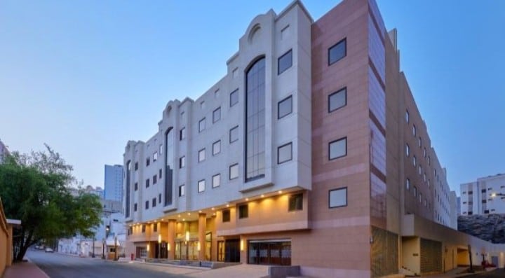 Hello! 😊 Holiday Inn is a 5-star hotel Located in Al Aziziah, about 5 km from Masjid Al Haram, a 10-15 minute drive. The hotel features an indoor and outdoor pool, fitness center, spa, sauna, and two restaurants serving local and international cuisine. Free Wi-Fi and on-site parking are provided. Family rooms are available. There is a free shuttle bus service to the Haram, running every hour throughout the day for easy access. Please review full hotel details before booking.