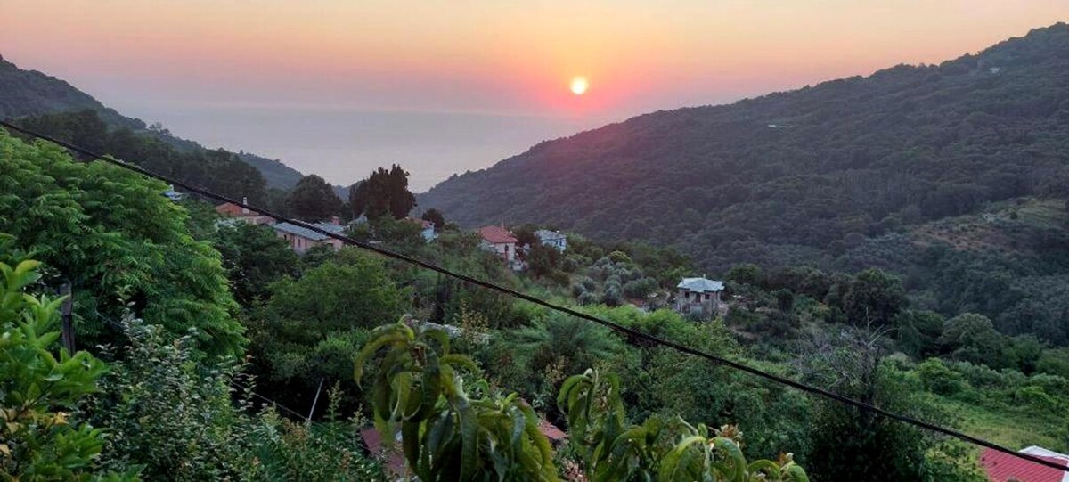 A country stone house gives you the opportunity of privacy and relaxation. Surrounded by olive trees and a breathtaking view of Aegean sea. Petit Stonehouse is five minutes drive from Mulopotanos Beach and five mins from Tsagarada village. Also available BBQ-Air cooler - fireplace-Tv-Hot water