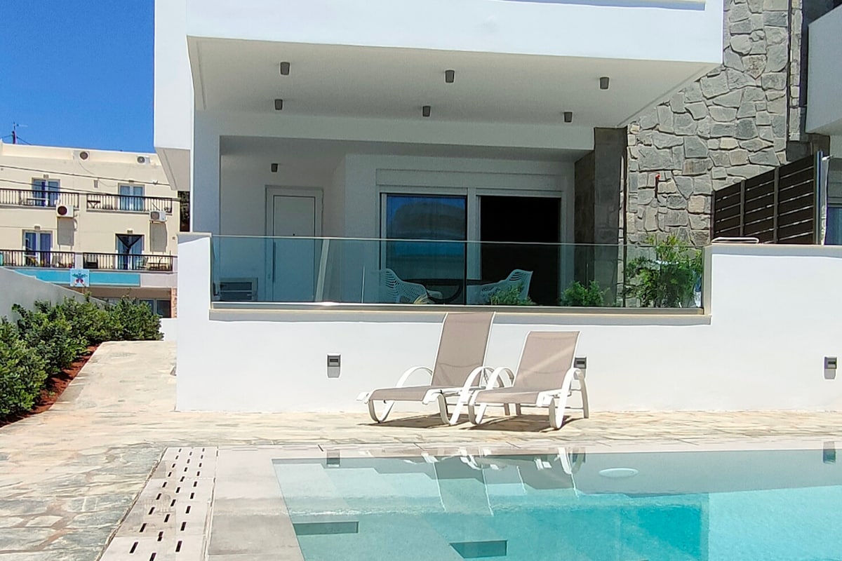 Welcome to Plakakia Luxury Apartments! Your stylish seaside retreat awaits with a spacious king-sized bed and a fully equipped kitchen. Step onto your terrace to soak in stunning sea views or take a refreshing dip in the shared pool. Experience luxury and relaxation at its finest in this coastal haven.