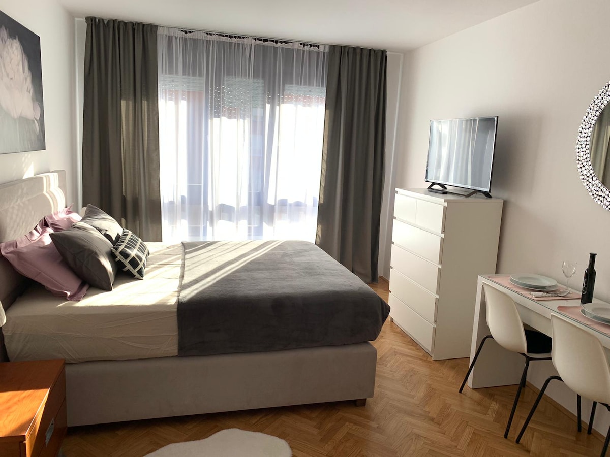 BRAND new elegant apartment in the CITY CENTER less then 10 min walking distance from the main square and train station. Situated in a peaceful backyard on the main street so you can enjoy quiet nights. There is one bedroom with queen size bed, living room with TV + NETFLIX and pull out sofa (queen size), bathroom with toilette and spacious walk in shower separated. All furniture and appliances are brand new. FREE tea&coffee,FREE towels.