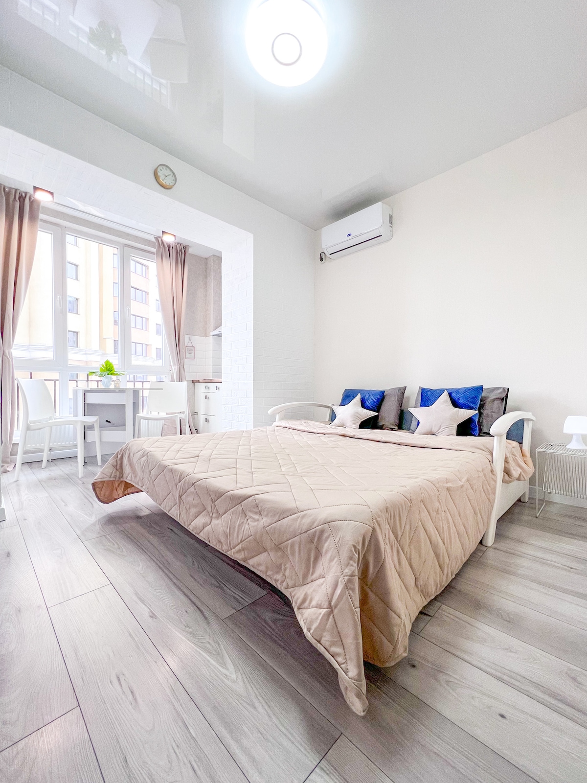 Lux Apartment. Тихий закрытый двор. Частная парковка. Современный дизайнерский ремонт, чистота, приятная атмосфера. Комфортабельная двуспальная кровать с ортопедическим матрасом,Smart-ТВ, Wi-Fi. Постельные принадлежности и комплект полотенец, тапочки предоставляются. Посуда и техника: Кондиционер, индукционная поверхность, холодильник, СВЧ, электрочайник, утюг, посуда и столовые приборы, стиральная машина, фен и душевые принадлежности. Все поверхности проходят дезинфекцию. Курить запрещено.
