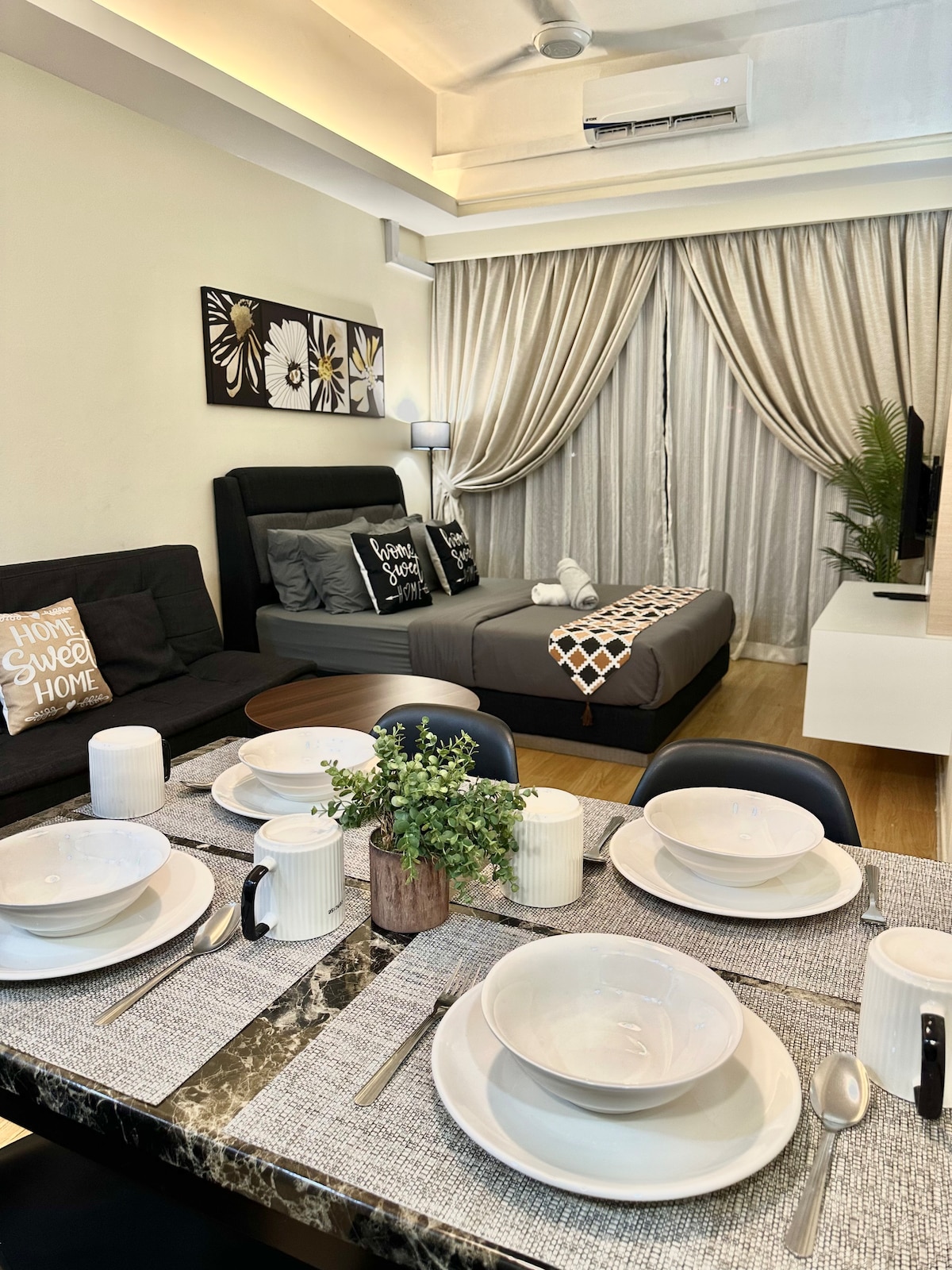 Good2Stay Apartment -Accommodate from 2-4 pax -1 Bedrooms & 1 Bathrooms (tub) -FOC 1 CarParking -Coway Water Dispenser -Wifi6 100-300mbps -Football game table -Shared Pool (Ground Floor) -Shared Gym (Ground Floor) -Shared Playground (Ground Floor) -Convenient Mart (Ground Floor)