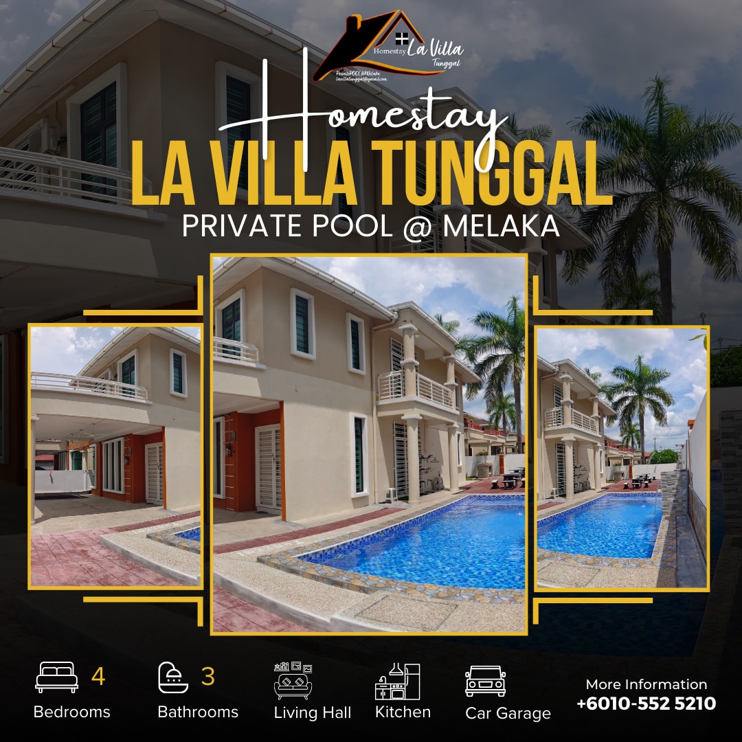 🏠 5 air-conditioned rooms with private bathrooms 🛋️ Single-storey villa + loft entertainment area (KTV, board games & more) 👨‍👩‍👧 Cozy stay for family with elderly & friends gatherings 🏊 Large Indoor swimming pool + BBQ facilities provided 🥦1 mins to Supermarket 🥥 5 mins to Klebang Coconut Milkshake 🎢 7 mins to MoCity Fun Park & Klebang Beach 🌆 8 mins to Kota Laksamana 🛍️ 15 mins to Jonker Street & Malacca Town