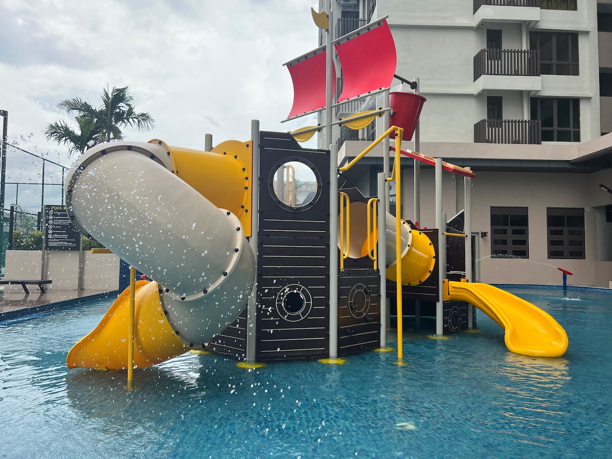 I am Kit,this is my First unit, special designed with a large room (1 queen and 3 single bed), a living room with sofa,Smart Tv, Wifi, Fan, Air-condition kitchen (for light cook) and balcony face to pool view. This unit is located in the center of Malacca City, Kota Syahbandar, Atlantis Residence. Here provide the largest swimming pool and water park in Malacca, children playground. Welcome staying my Homestay and enjoy a Sweet Holiday. .