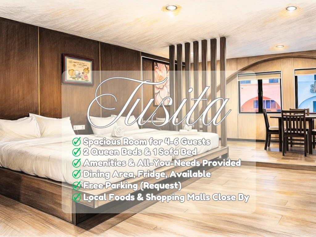 Newly Established in June 2025. Tailored for comfort and style, Tusita is a thoughtfully designed space, perfect for families or groups. ⭐️2 queen-sized beds ⭐️1 queen-sized sofa bed ⭐Private bathroom with amenities 🔑100% self check-in 🚶♂️5 mins walk to Mall 🚶♂️12-20 mins walk to A' Famosa, Jonker Street 🚔7 mins grab to Jonker Street 🌟Reserved Parking FCFS 🅿️8:00-17:00 Rm0.60/hour. Free on Mon&Tues 🌟this unit is on 1st floor. Direct Inquiry: 📞0️⃣1️⃣1️⃣ 5️⃣3️⃣3️⃣8️⃣ 2️⃣4️⃣0️⃣0️⃣