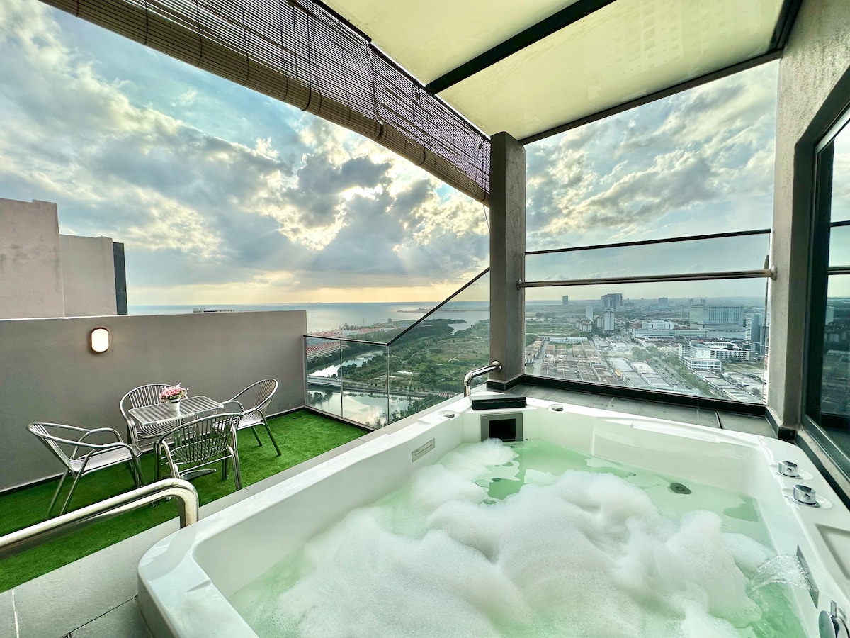 按摩浴缸,百万美金景观,马六甲,可住5人,全新Coway净水器