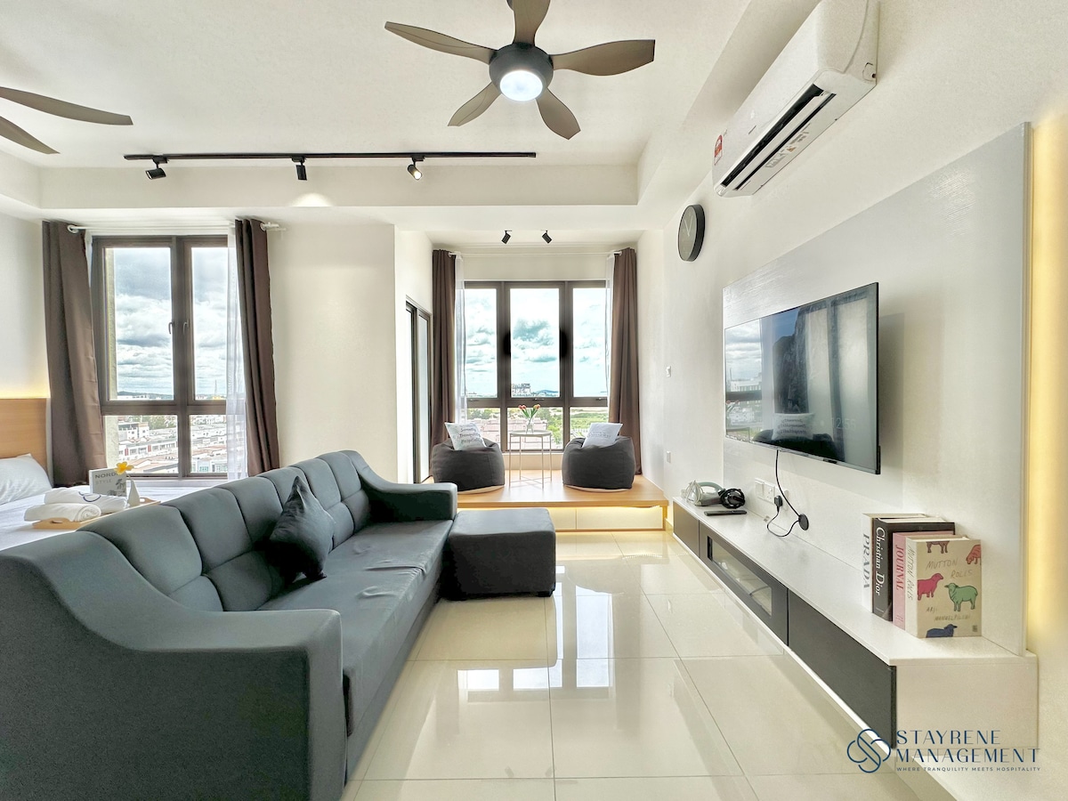 Type/View : SeaCity 1 bedroom (without balcony) Enjoy a romantic getaway with our SEACITY unit located at Imperio Residence. We are located at Melaka Town which is a short drive from Jonker Street, Dataran Pahlawan, and the Portuguese Settlement. Fancy staying in instead? Enjoy the seaview sunset during evening from the living room. [WIFI & ANDROID TV PROVIDED] FREE PARKING FOR ONE VEHICLE PROVIDED