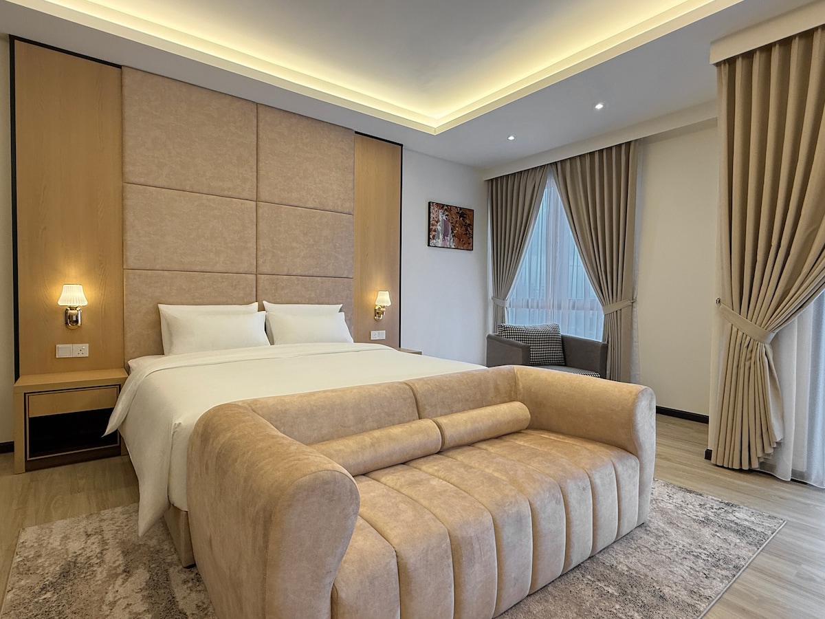 Welcome to our luxurious Studio apartment, featuring a modern design, cityview from balcony, and a bathtub. Ideal for honeymoon and mingling, this apartment offers a stylish living area, spacious bedrooms with spectacular view, a well-equipped kitchen. Unwind and pamper yourself in the indulgent bathtub, adding a touch of luxury to your daily routine. Get ready to embrace an extraordinary living experience in this exceptional apartment.