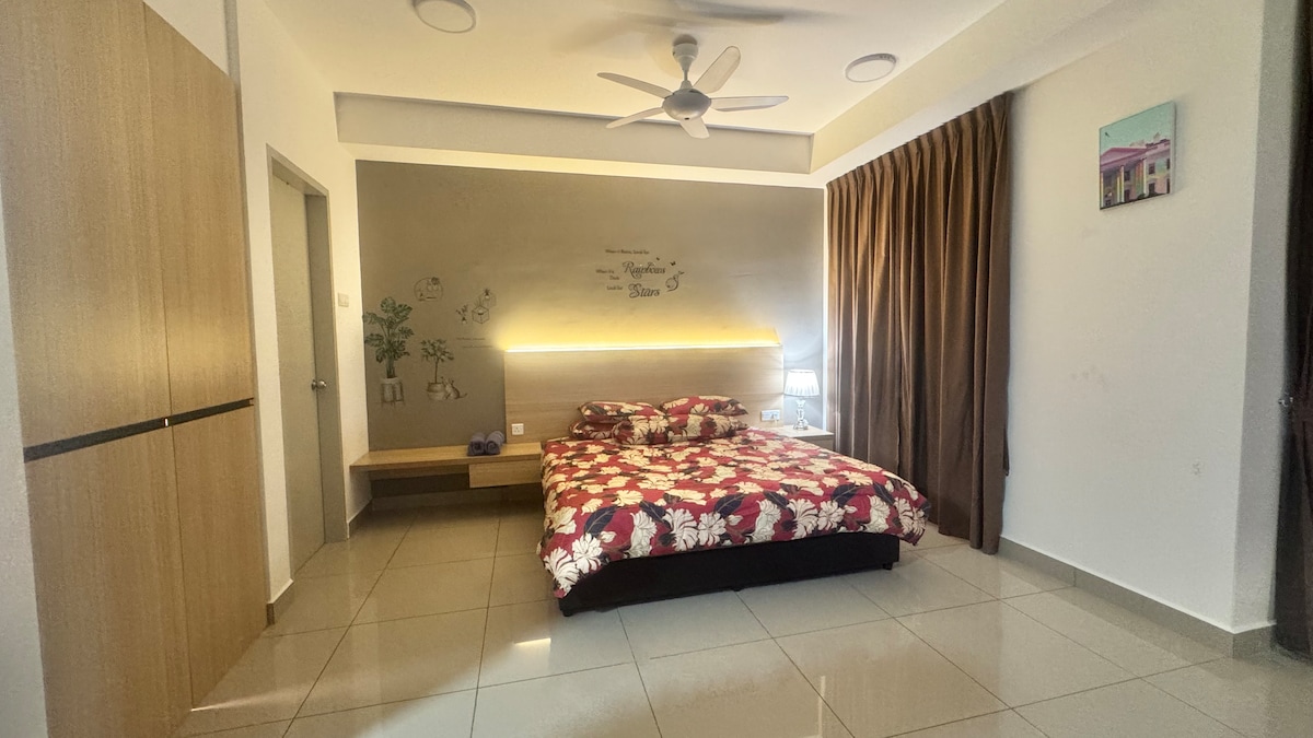 ✅ WiFi ✅ Smart TV ✅ Netflix ✅ 1 Free Parking ✅ 1 King Bed + 1 Queen Bed ✅ Iron & Ironing Board ✅ Hair Dryer ✅ Hangers ✅ Mineral Water (Amount based on no of guests) ✅ Refrigerator ✅ Water Boiler, Plates, Cups, Scissors, Spoons, Forks, Chopsticks, Fruit Knife, Chopping Board ✅ Shower Gel & Shampoo (Tube) ✅ 2 Bubble Bath (Not bath bomb) ✅ 4 Towels ❌ Kitchen Appliances (only water boiler provided) ❌ Washing Machine / Dryer ❌ Toothbrush & toothpaste
