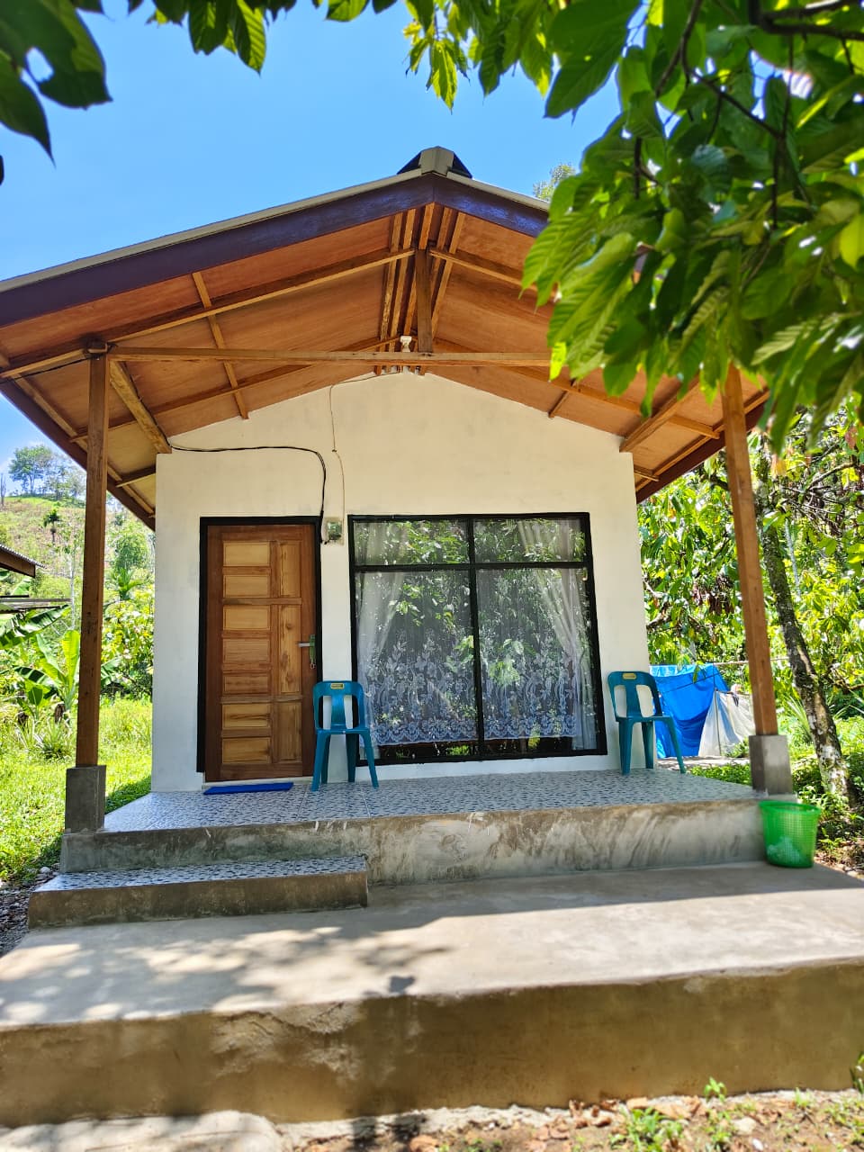 TERATAK DAMAI LANGKAWI, Rustic Rural Retreat are 6 unique self-catering Guesthouse cottages and private home on 1.25 acres of private gated compound surrounded by paddy (rice) fields and verdant gardens in a village near the beach. DAMAI 1 Cosy cottage with private enclosed garden & verandah space. Max 3 adults Not suitable for infant & children below 6 years old. Please take time to read the Descriptions below to see amenities this cottage offers.