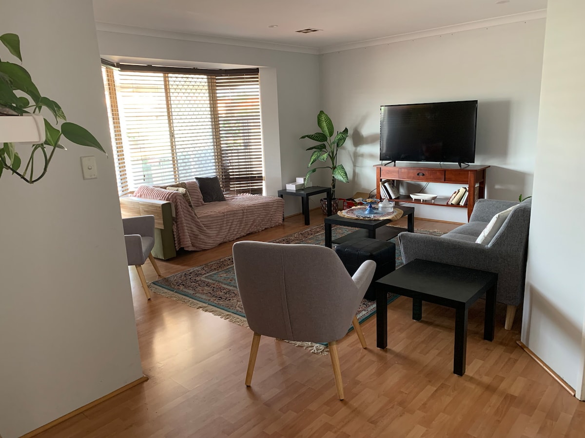We are a couple in our 30s and renting 2 rooms of our house in Ballajura. It is a charming home located in a peaceful neighborhood. It features two spacious rooms that we are offering for rent separately, each designed to provide a comfortable and relaxing environment. The house has a fully equipped kitchen, two cozy living rooms, and a beautiful backyard. It's conveniently located near public transportation, shopping centers, parks and only 20 minutes drive away from the airport.
