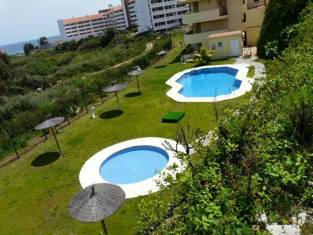 Cozy, bright, entirely renovated quality flat on the front line with sea views from the sunny and large balcony, both rooms and the bathroom. Features his and her shower, full kitchen, 2 tennis courts, 2 swimming pools (1 for children) large gardens, private beach area, free beach beds and private parking. We have a sandy beach with Blue Flag status and direct access to the sea boardwalk. Near Marbella and La Cala with 75+ restaurants and many shops walking distance. Strict cleaning in protocols