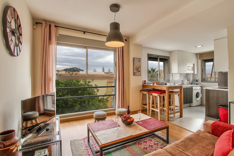 Céntrico. Apartamento confortable y luminoso. Nuevo. Suelo de mármol. Espacioso y decoración única. Tipo loft. Chaiselongue. 5 minutos a pie de la Catedral, calle Larios, Teatro Cervantes y Museo Picasso. En pleno casco antiguo. Bares de tapas y animación. Tranquilo silencioso. TV flat 50". Habitaciones con tv 32". Parking de bicicletas en el patio del edificio. A unos 10 minutos a pie de la parada del tren que lleva al aeropuerto. Estación de Autobuses y playa a unos 12 minutos a pie.