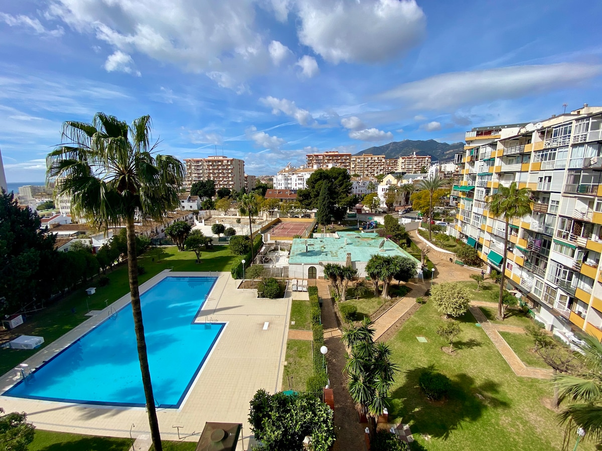 Cozy, bright, entirely renovated quality flat on the front line with sea views from the sunny and large balcony, both rooms and the bathroom. Features his and her shower, full kitchen, 2 tennis courts, 2 swimming pools (1 for children) large gardens, private beach area, free beach beds and private parking. We have a sandy beach with Blue Flag status and direct access to the sea boardwalk. Near Marbella and La Cala with 75+ restaurants and many shops walking distance. Strict cleaning in effect.