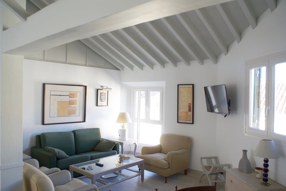 Coqueto ático con gran terraza en pleno centro histórico de Málaga, en calle semipeatonal, muy tranquila. Ideal para explorar Málaga. A 2 minutos de la calle principal Marques de Larios y a 20 minutos andando de la playa. Al doblar la esquina se encuentra el Mercado de Abastos,joya histórica, donde encontrarán tanto frutas y verduras frescas, como pescado y carne, también puestos de pescado frito.