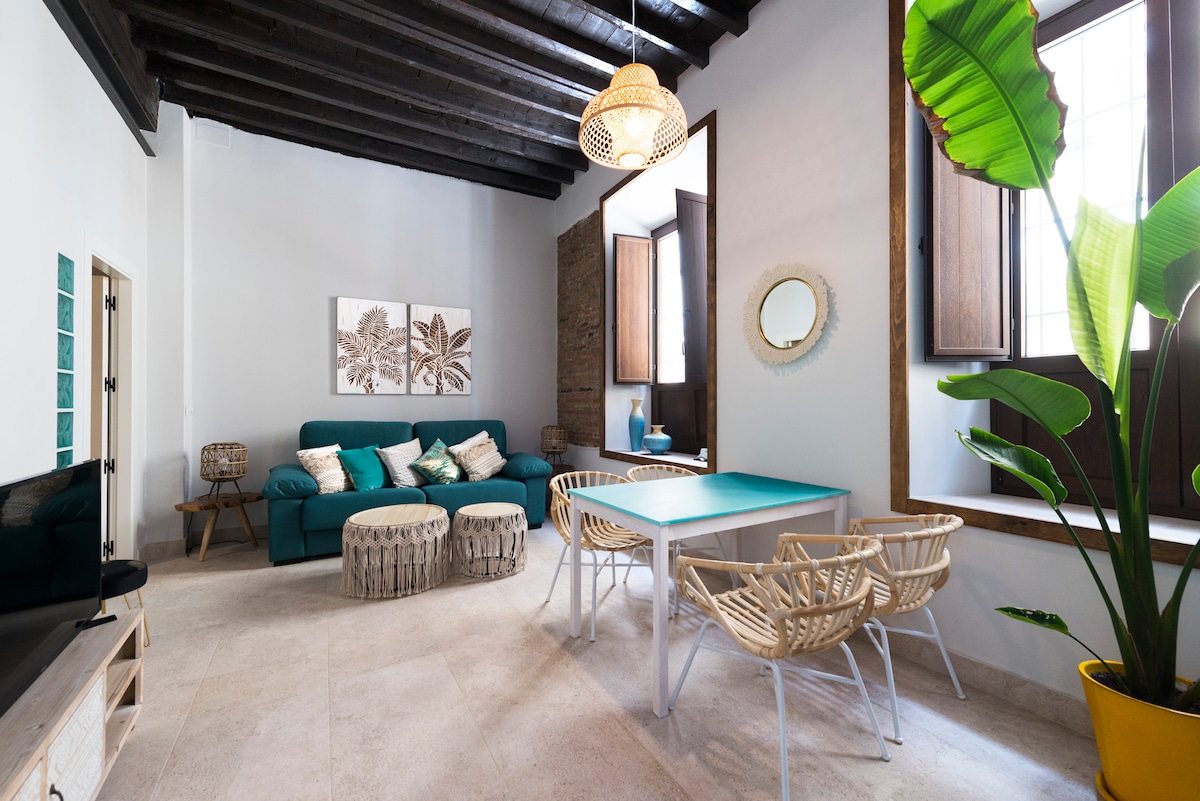 Este magnífico piso de 70 m2, se encuentra en la segunda planta sin ascensor de un precioso inmueble. El edificio, recientemente reformado, guarda la estética de una típica casa andaluza, con su patio central lleno de flores. La vivienda cuenta con una habitación y un baño. El salón-comedor y la cocina ocupan un espacio común diáfano en la zona central de la vivienda, con grandes ventanales que dan al patio interior, y con salida directa a una terraza de 30 m2, con pérgola y con barbacoa.