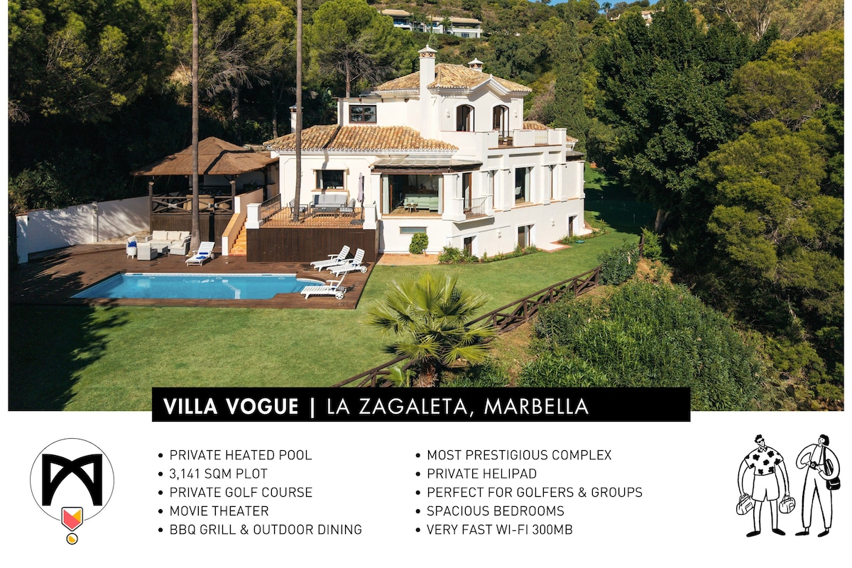 Villa Monte Elviria is located 8 minutes from Marbella's best beaches, up a hill with majestic views over the sea, Gibraltar and the UNESCO world heritage Sierra de las Nieves mountains, the villa features: -A large infinity pool HEATED ALL YEAR -A garden comprising hanging gardens, a Spanish patio, terraces and a lawn -5 large bedrooms including 4 on-suite bathrooms with top quality king size beds (also available in a twin set-up) -A fully equipped home cinema and pool table -A/C throughout