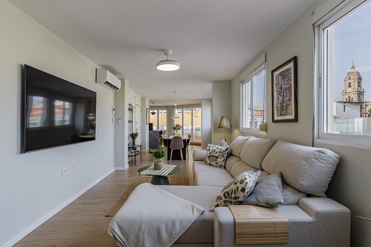 Coqueto ático con gran terraza en pleno centro histórico de Málaga, en calle semipeatonal, muy tranquila. Ideal para explorar Málaga. A 2 minutos de la calle principal Marques de Larios y a 20 minutos andando de la playa. Al doblar la esquina se encuentra el Mercado de Abastos,joya histórica, donde encontrarán tanto frutas y verduras frescas, como pescado y carne, también puestos de pescado frito.