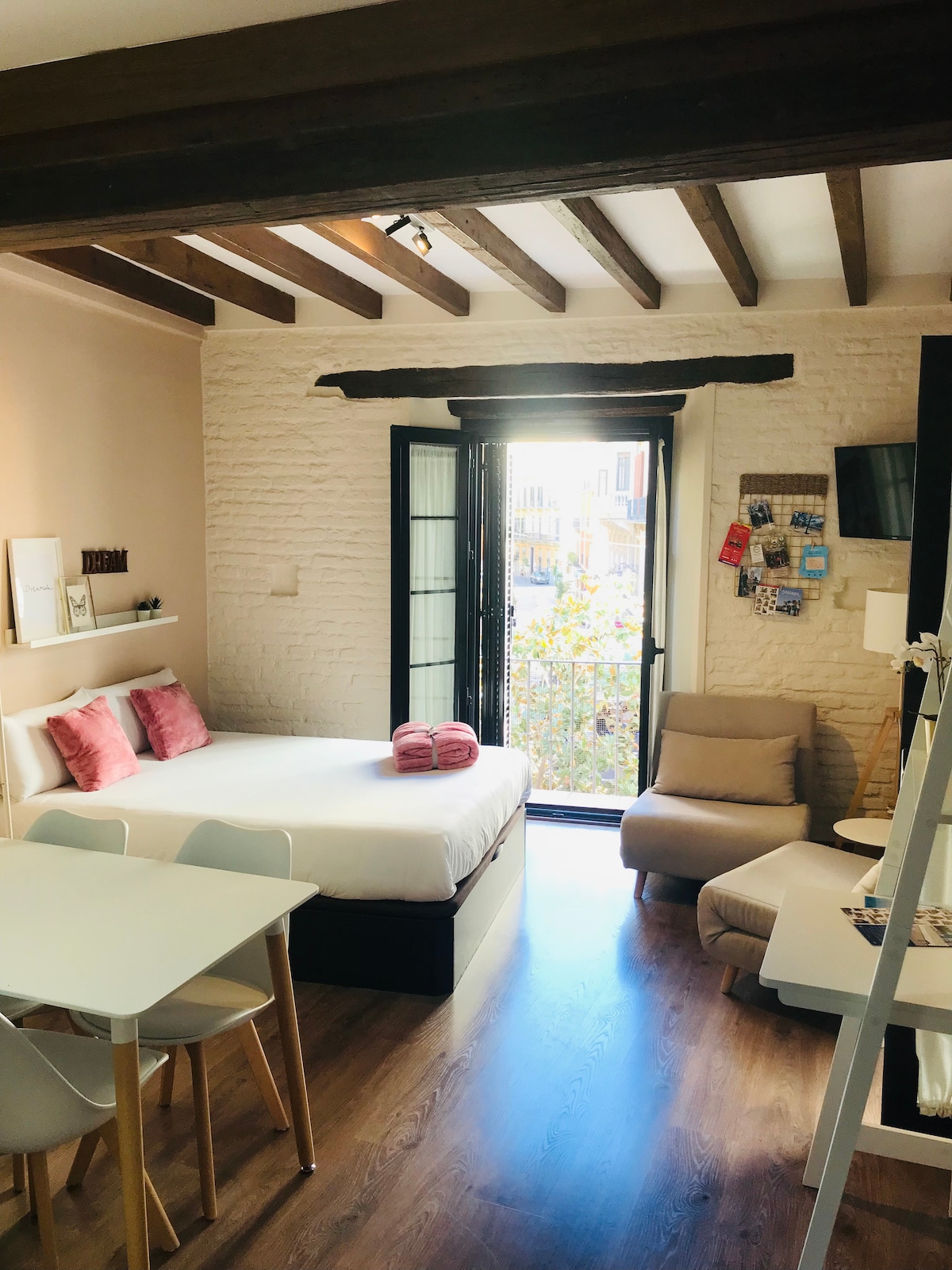 Stunning panoramic view over the Cathedral!! Charming, cozy studio in the heart of the pedestrian streets of Malaga.The apartment is recently renovated, nicely decorated and fully equipped with a modern kitchen, independent bathroom and a cosy living area. There is a double bed and a sofa ideal for 1 kid. Ideal location 1 min walking distance from the main attractions and museums, 2 min to calle Larios, 5 min to the harbour (Muelle 1) and 10 min to the beach (Malagueta). Calle Afligidos 2