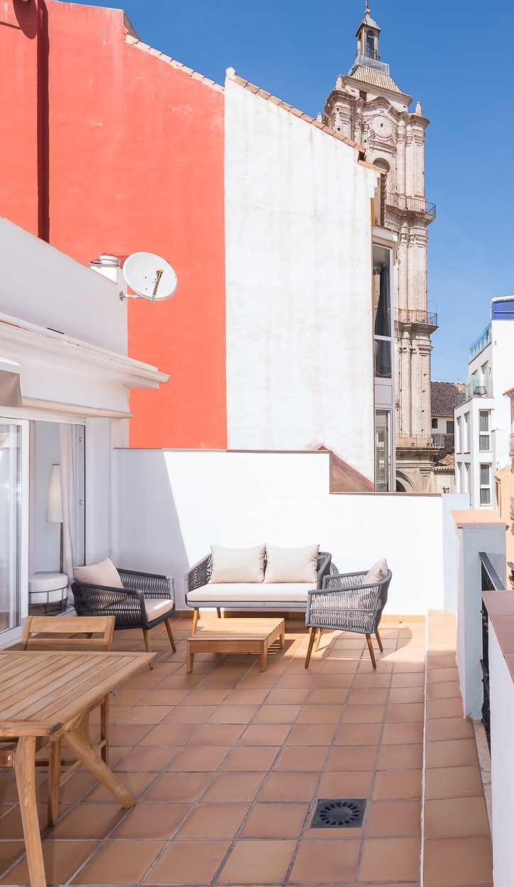 In a typical charming Andalusian building in the heart of Malaga, we'll find this unique penthouse with balcony and a private rooftop terrace. From where we enjoy some of the best views of the city & Cathedral amongst several other churches and landmarks. The rooftop allows for sun all day, there are also plenty of terrace space in shade. From the penthouse we are a short 5 minute walk to the busling city center. Welcome!