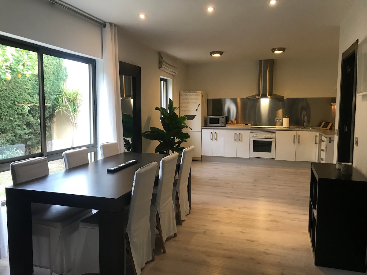Amplia y acogedora casa ubicada en un barrio tranquilo, rodeado de muchos comercios y a minutos caminando a la playa. Cuenta con una zona de muy fácil aparcamiento justo bajo la vivienda. Muy bien comunicado con el centro de la ciudad y el aeropuerto ( 5 min en coche ). Cuenta con parada de taxi, uber, bus y metro a escasos metros del apartamento. Ideal para familias o parejas que quieran disfrutar del sol y de la gastronomía de nuestra tierra.