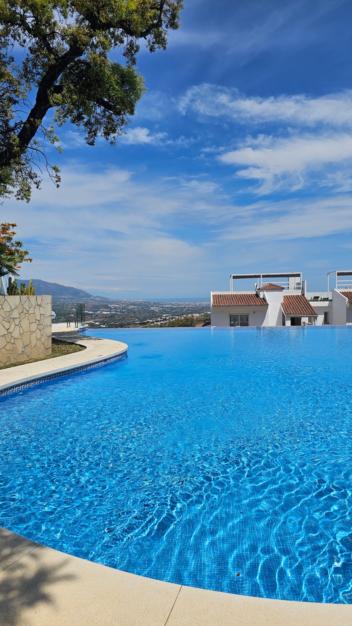 Casa Del Mirador is a Luxurious Penthouse style Villa with a Private Pool & Hot Tub. A truly stunning location that provides Panoramic views of the valleys and mountains of Sierra Blanca in Marbella and Sierra de Mijas. It has Super Fast Fibre Optic Internet and is walking distance to the restaurants, bars, cafes, shops, spa and gyms. Only a 20 minute drive to the coast of Marbella and Fuengirola, and Malaga airport. Or only a short drive to the Golf Courses, Lakes, Forest hikes and walks.