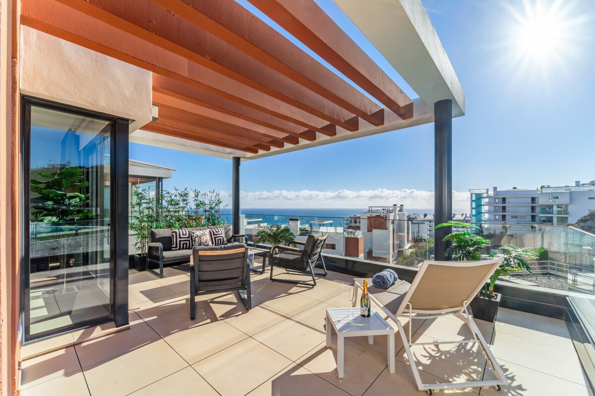 Ático lujoso, vistas al mar y piscina climatizada