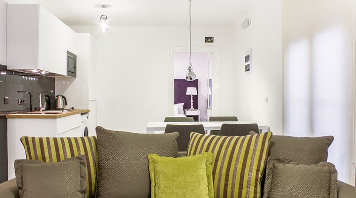 Nuestros apartamentos de un dormitorio disponen también de un amplio sofá cama y baño privado. Se encuentran totalmente reformados, para ofrecer una estancia exclusiva en el corazón de Málaga, a un paso de calle Larios. Todos los apartamentos vienen con cocina y los utensilios necesarios para que disfrutes de esta ciudad llena de vida a tu ritmo y a tu aire. Además, están 100% insonorizados para que puedas descansar profundamente en una burbuja de paz y confort.