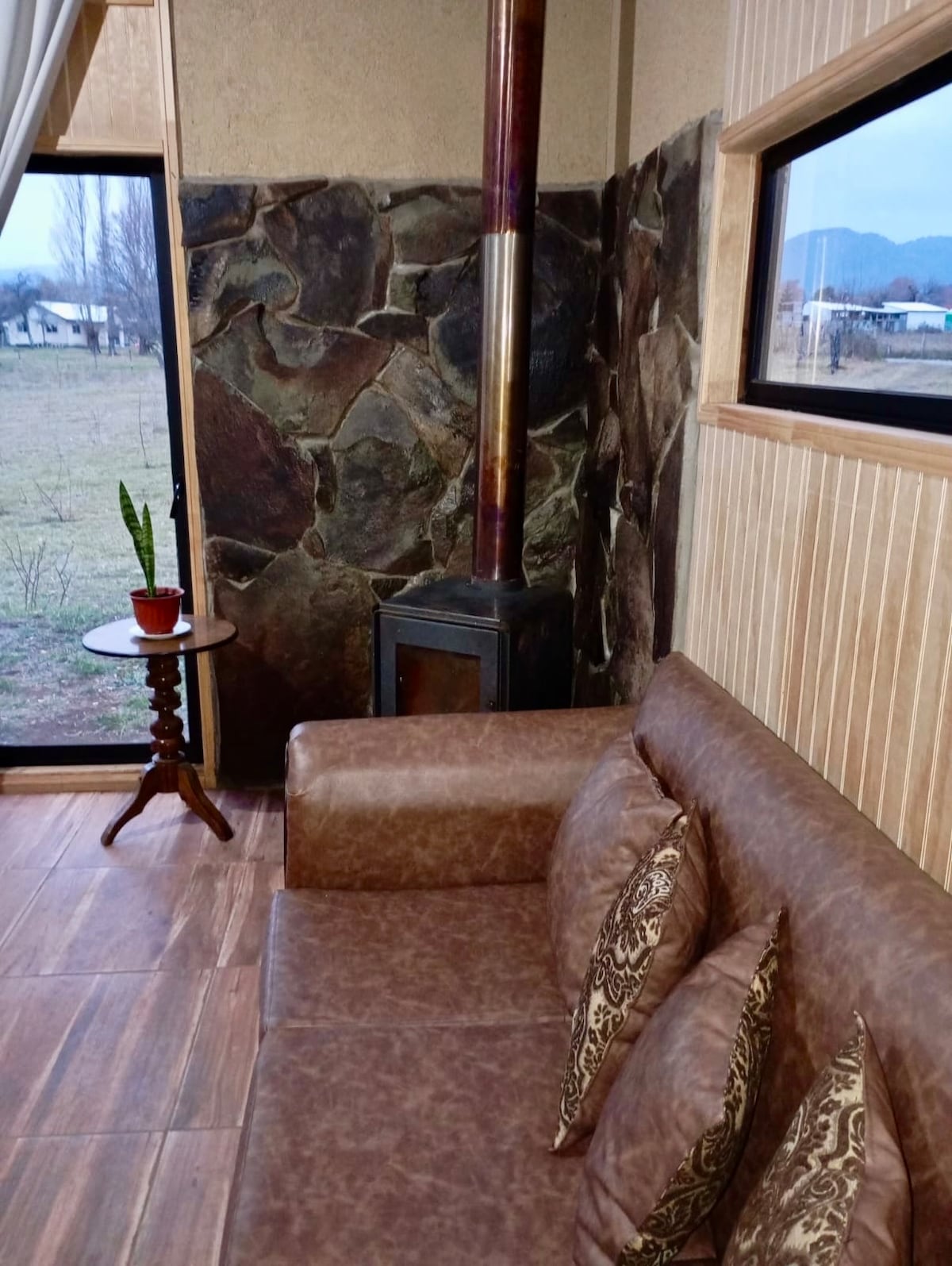 Disfruta de una estancia cálida y confortable en esta amplia cabaña ideal para descansar y reconectar con la naturaleza. Cuenta con estufa a leña para las tardes frías, una cocina full equipada para que prepares tus comidas favoritas, y espacios interiores pensados para tu comodidad. Desde la terraza podrás relajarte con una hermosa vista al entorno natural que rodea la cabaña. Un lugar perfecto para desconectarse y disfrutar de la tranquilidad.