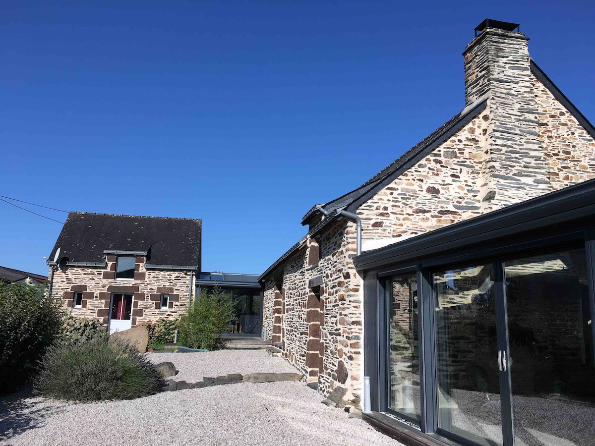 Gîte classé 4 étoiles par l'organisme officiel Étoiles de France. Maison de caractère avec piscine chauffée par panneaux solaire, terrasse et jardin et espace de jeux près de la piscine. Très calme à la campagne, dans une ancienne demeure chaleureuse, tout confort. Maison entièrement rénovée, très lumineuse et chaleureuse dans un cadre calme à la campagne, proche des prés de Vilaine, sur un ancien site historique. Située à 40 min de Vannes et de la Baule et 30 min de la mer.