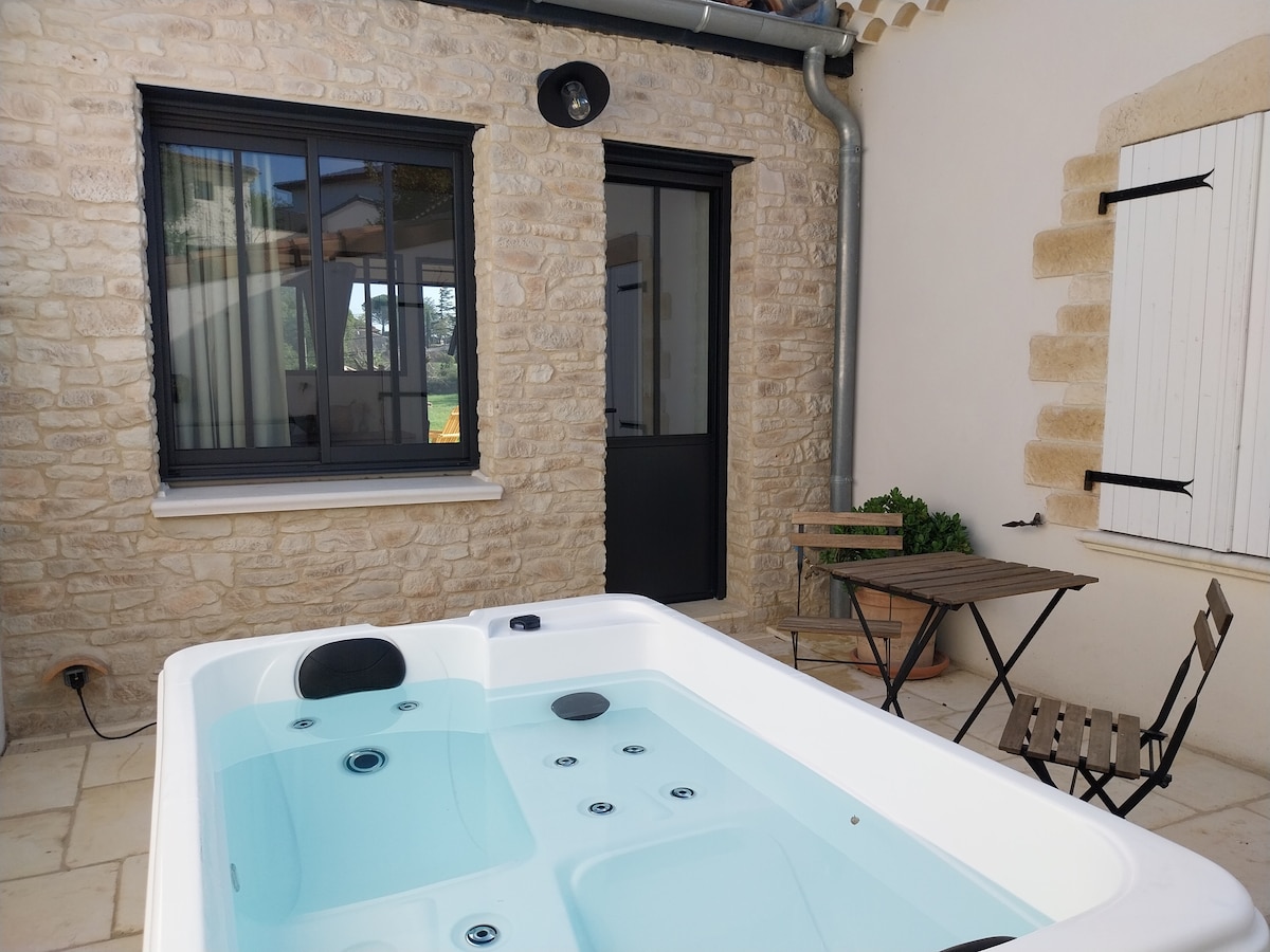Pensé comme un lieu à vivre, à ressentir, à ralentir, le Studio vous invite au dépaysement. Pour un déplacement professionnel, un séjour sportif, ou un week-end détente, le Studio est un petit cocon, dans l'essentiel. Accolé à notre résidence principale mais bénéficiant de son entrée indépendante, le Studio dispose d'une terrasse privative. Profitez de la piscine familiale et du jacuzzi (non chauffés) et du terrain de pétanque. Services possibles: massage bien-être/location VTT/lessives