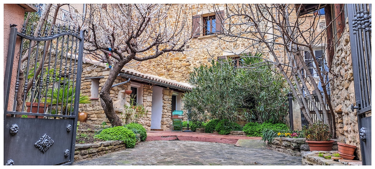 Le charme de la pierre dans un écrin de verdure avec salon de jardin et stationnement privé dans la cour . Cette maisonnette de plain pied située au cœur du village de Bédoin est proche à pied de toutes commodités; commerces, restaurants, pharmacie .Le marché provençal du lundi matin ( d'avril à octobre ) vous éblouira. C'est l'étape idéale pour les sportifs ( 3 personnes max ) cyclistes ou randonneurs amoureux du Ventoux , des gorges de La Nesque et des magnifiques paysages provençaux.