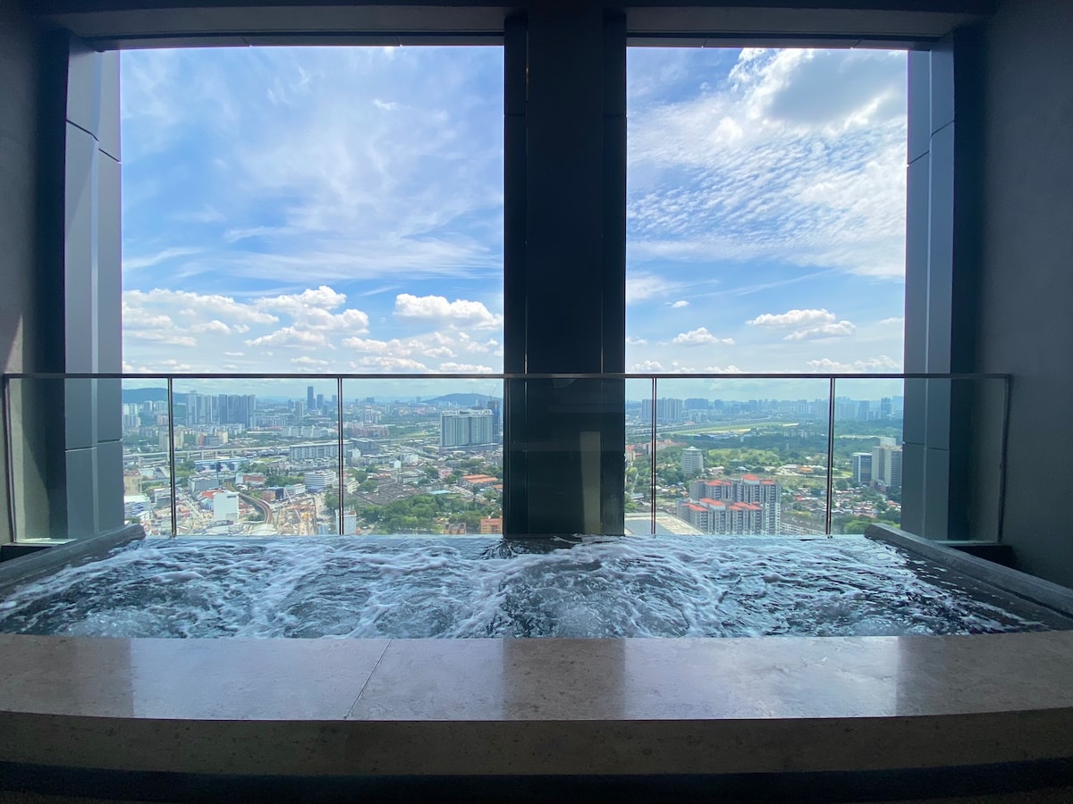 Enjoy a stylish experience at this centrally-located place: - 10 mins walk from KLCC Twin Tower - 5 mins drive from KLCC Twin Tower - 5 mins drive to Pavilion Shopping Center - Near the Bukit Bintang Food Paradise and Entertainment Center - Majestic KLCC view (from the pool area) Facilities: - 55" TV with Netflix access - Infinity pool overlooking KLCC Twin Towers, KL Tower & night skyline - Jacuzzi and Pool lounge - Gym access - Fast wi-fi connection - Hot water - Air conditioner