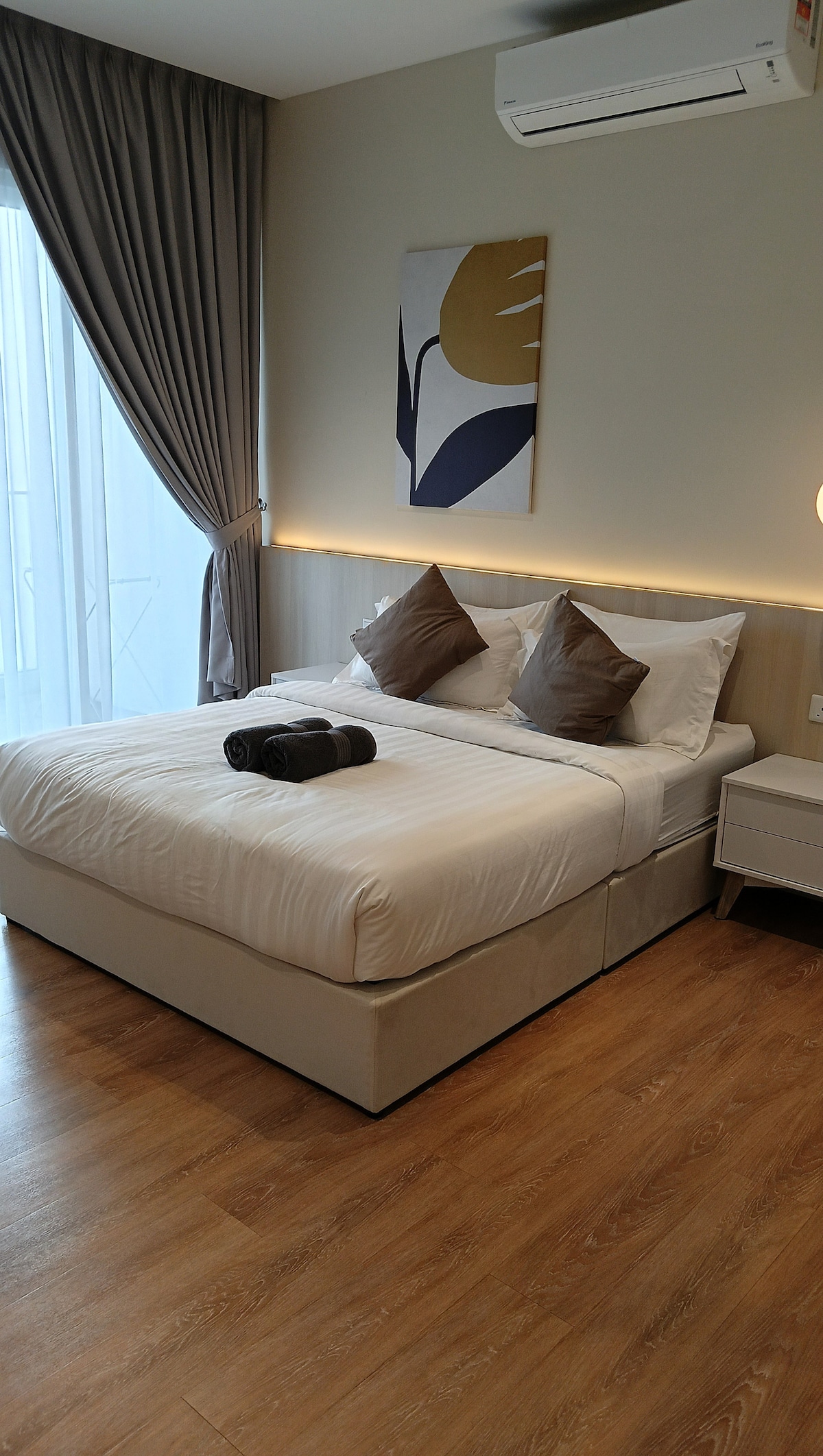 📍Pertama Residency Welcome to Grey City! This studio is newly set up with lots of love, combines contemporary decor with modern amenities and an experience all can enjoy especially Jacuzzi moment with your love & 100” projector screen w/Netflix. This unique place has a style all its own, it offers a cozy, clean, quiet & refreshing stay environment for couples. Come and experience in the Grey City! See you.