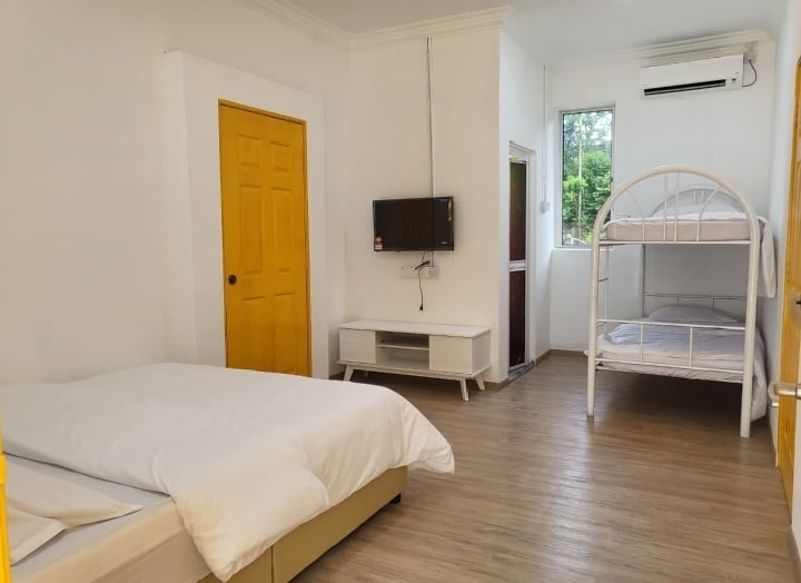 Relaxing Family Room with Pool Access in Langkawi 🌴 Bring your loved ones and unwind in our cozy tropical room — perfect for a small family or group of up to 4 guests. Featuring a spacious layout with x2 Queen-size bed and a comfy sofa, this spacious private room is designed for rest after a day of island adventures.