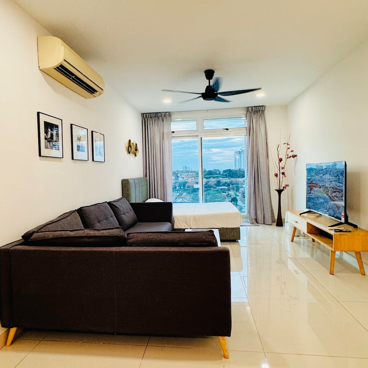 📍Pertama Residency Welcome to Grey City! This studio is newly set up with lots of love, combines contemporary decor with modern amenities and an experience all can enjoy especially Jacuzzi moment with your love & 100” projector screen w/Netflix. This unique place has a style all its own, it offers a cozy, clean, quiet & refreshing stay environment for couples. Come and experience in the Grey City! See you.