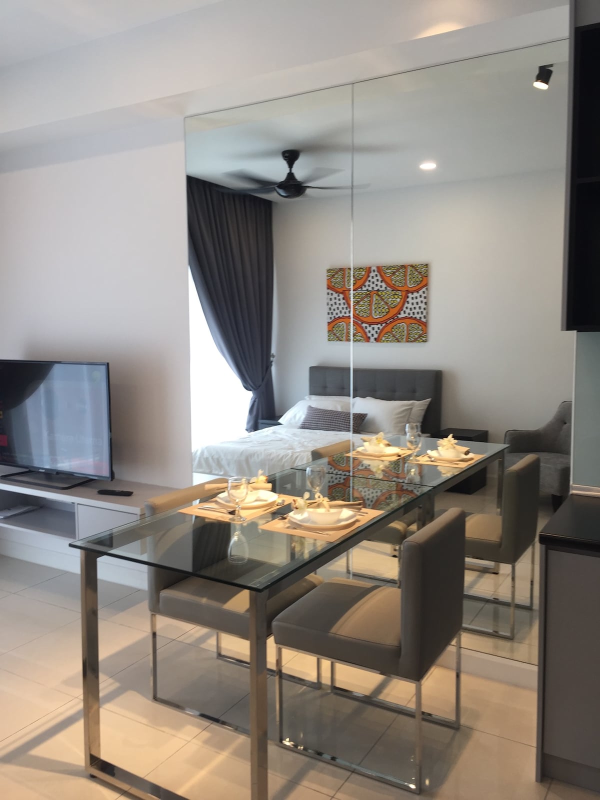 This 1 Br apartment comes with a breathtaking view of KL skyline. It has a 3-seaters sofa living room, dining table, kitchen, desk and a big balcony facing the KL Tower & Petronas Twin Towers. It comes with a 55” TV, Hi-Speed WIFI and a Queen size bed that can fit you comfortably. *The other unit of this Dual Key apartment is a compact Studio with Queen size bed, pantry, washroom & bath. It can fit in friends who travel with you with privacy. Welcome to ask for more details!