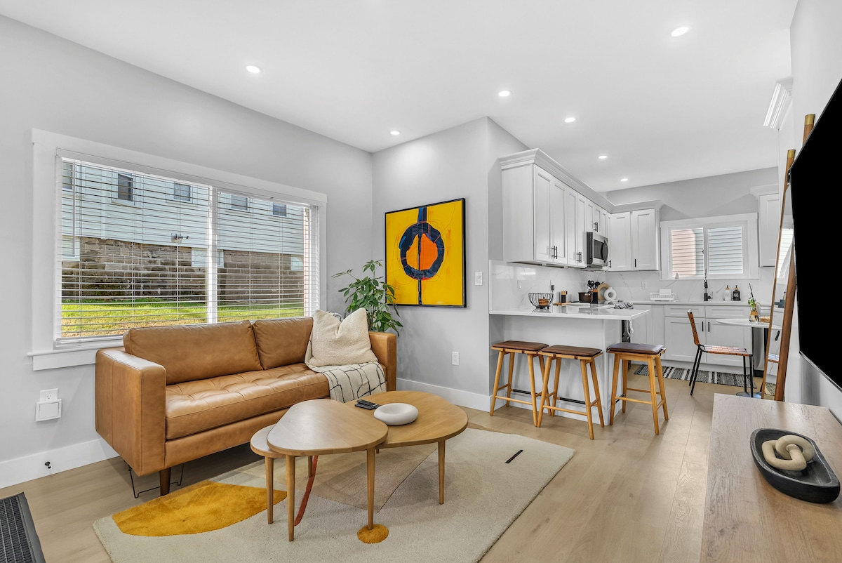 Stay in this fully renovated suite featuring a King-size memory foam bed designed for your comfort. 🚗 Private driveway & entry for easy, stress-free parking. 🍳 Fully equipped kitchen with modern stainless steel appliances, including a gas stove, microwave & dishwasher. 🛁 Private bathroom with relaxing Jacuzzi tub. 🍽️ Dining area, work desk, high-speed Wi-Fi, and Smart TV for your convenience. 🌟 Relax in comfort near Boston, read our glowing 5-star reviews!