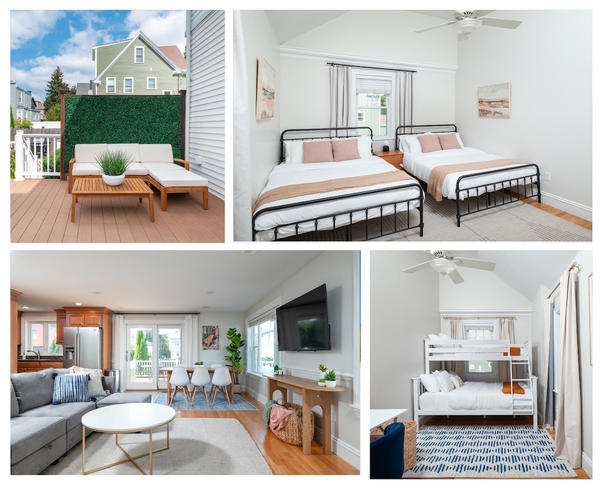 Spacious 5BR home just 7 miles from Boston and Logan Airport. Chef’s kitchen with Bosch appliances, Smart TV, fast Wi-Fi, private yard, and deck. Family-ready with Pack ’n Plays, high chairs, baby gates, and stroller. Central A/C, driveway for 3 cars, and public transit nearby. Ideal for mature guests (35+). No parties or unapproved pets. Comfort, space, and convenience — perfect for families or group stays.