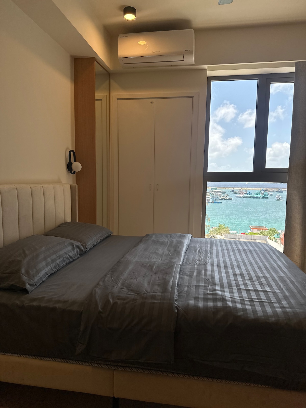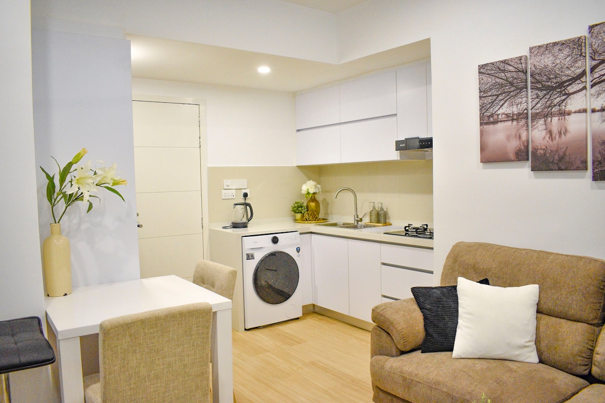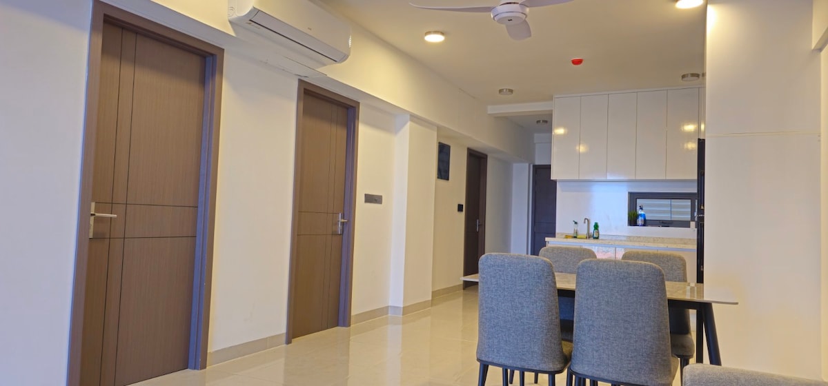 Relax in a spacious 3BR apartment with ensuite baths, private balcony & stunning sea views. Enjoy access to an infinity rooftop pool, gym & billiard lounge. Just 10 mins from the airport. Fully equipped kitchen, Wi-Fi, Netflix & washing machine included. Perfect for families, groups or short stopovers. Walk to ferry terminal, watch rooftop sunsets & start your day with coffee on the balcony.”