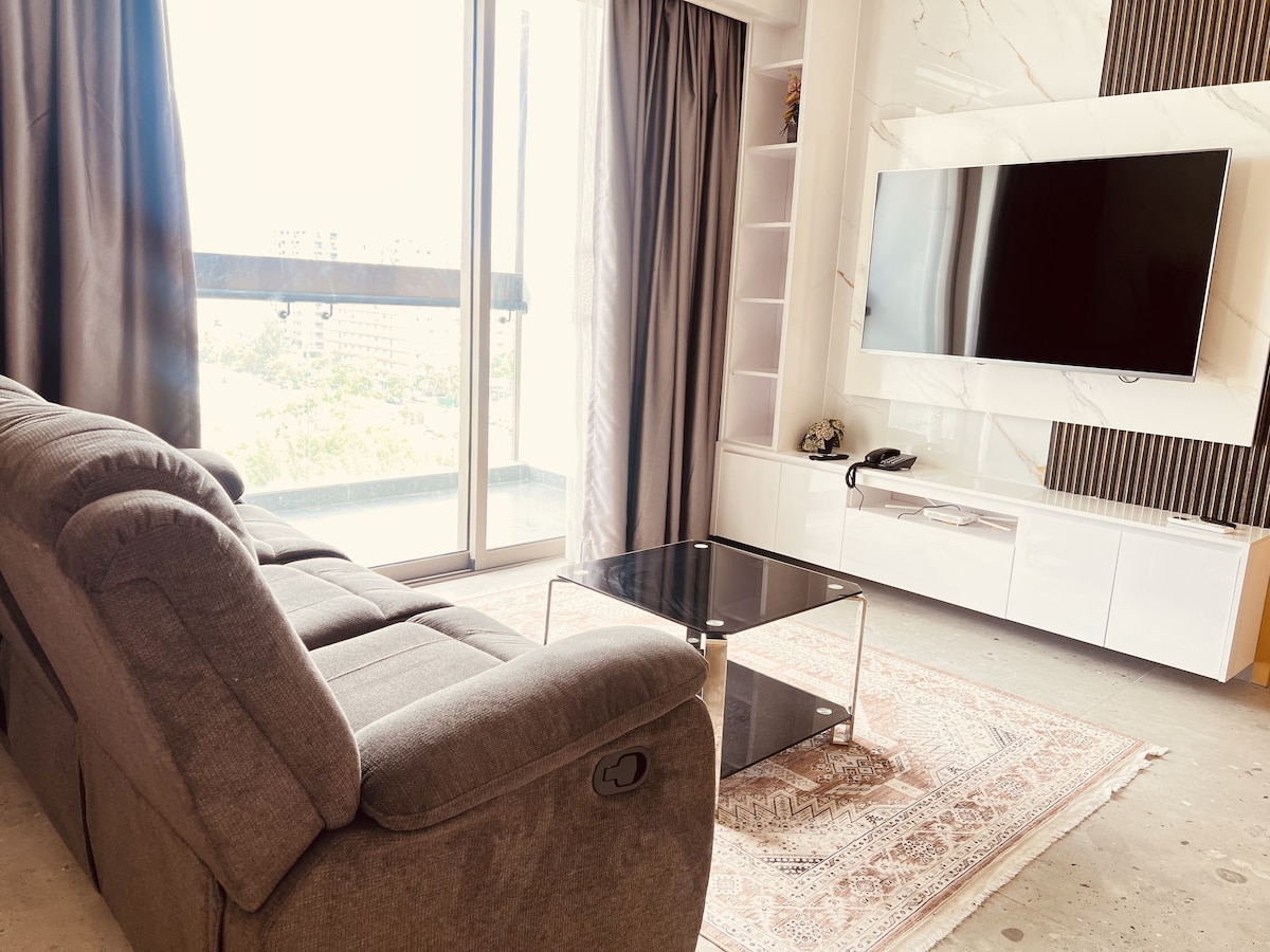 Relax in a spacious 3BR apartment with ensuite baths, private balcony & stunning sea views. Enjoy access to an infinity rooftop pool, gym & billiard lounge. Just 10 mins from the airport. Fully equipped kitchen, Wi-Fi, Netflix & washing machine included. Perfect for families, groups or short stopovers. Walk to ferry terminal, watch rooftop sunsets & start your day with coffee on the balcony.”