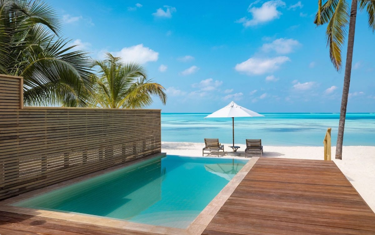 At the huge villa over water with private pool peace and quiet are guaranteed at the villa because space and privacy are built into the very essence of this paradise > Entire Water villa in a 5 star private island > Private pool > 75 minutes seaplane > 2 Adults & 3 Child > 190 SQM > Split stay in different types of villa possible > Meals, Excursion Airport Transfer ( additional charges Apply ) Kindly ping me before sending reservation request to arrange transportation to & from MLE Airport