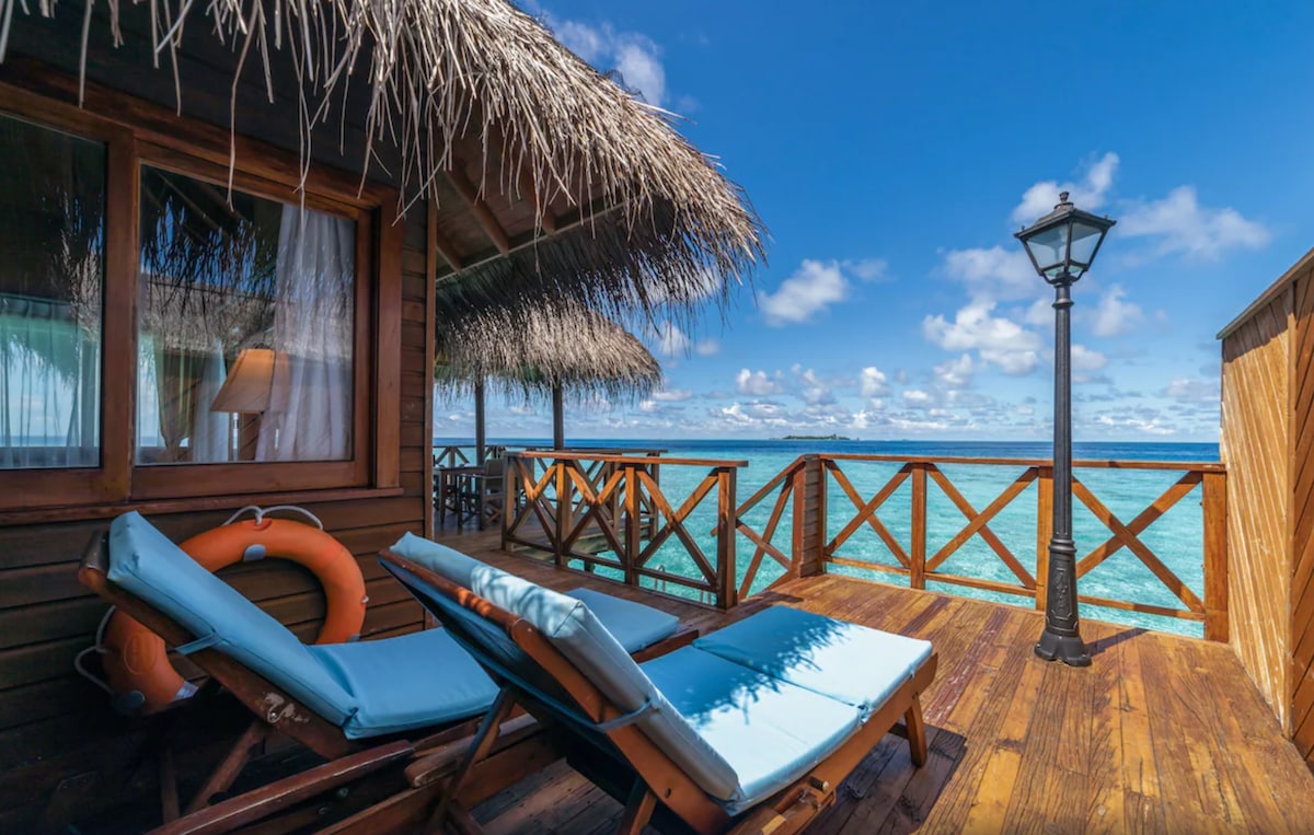 Private room located within the South Male Atoll, features crystal clear water, white sandy beaches and lush green view. > Entire Water Villa >40 minutes Speedboat > Maximum 3 guests > 37 SQM > Split stay in different water villa ( upgrade charges Appy ) Kindly, ping me before sending reservation request to arrange transportation to & from Male International Airport.