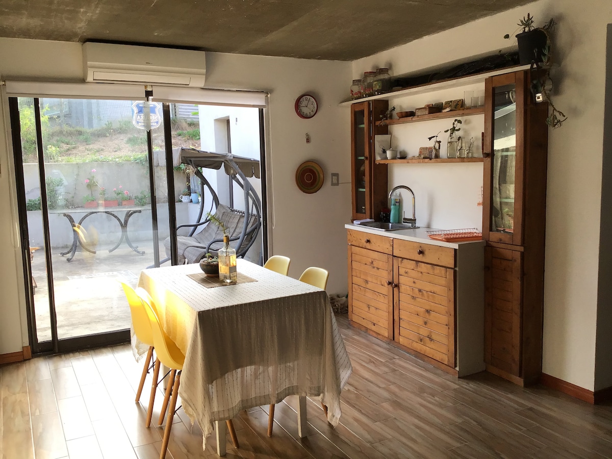 Bienvenid@s a casa Krakatoa! A pocas cuadras de la playa y de la principal de la Barra! Súper seguro! Con aires de posada, éste Studio de 40 mts2 cuenta con todo lo necesario para pasar unos días geniales! Lugares de interés: actividades en familia, vida nocturna y transporte público. Te va a encantar mi lugar debido a la luz, el espacio acogedor y los techos altos. Mi alojamiento es bueno para parejas, aventureros y viajeros de negocios.