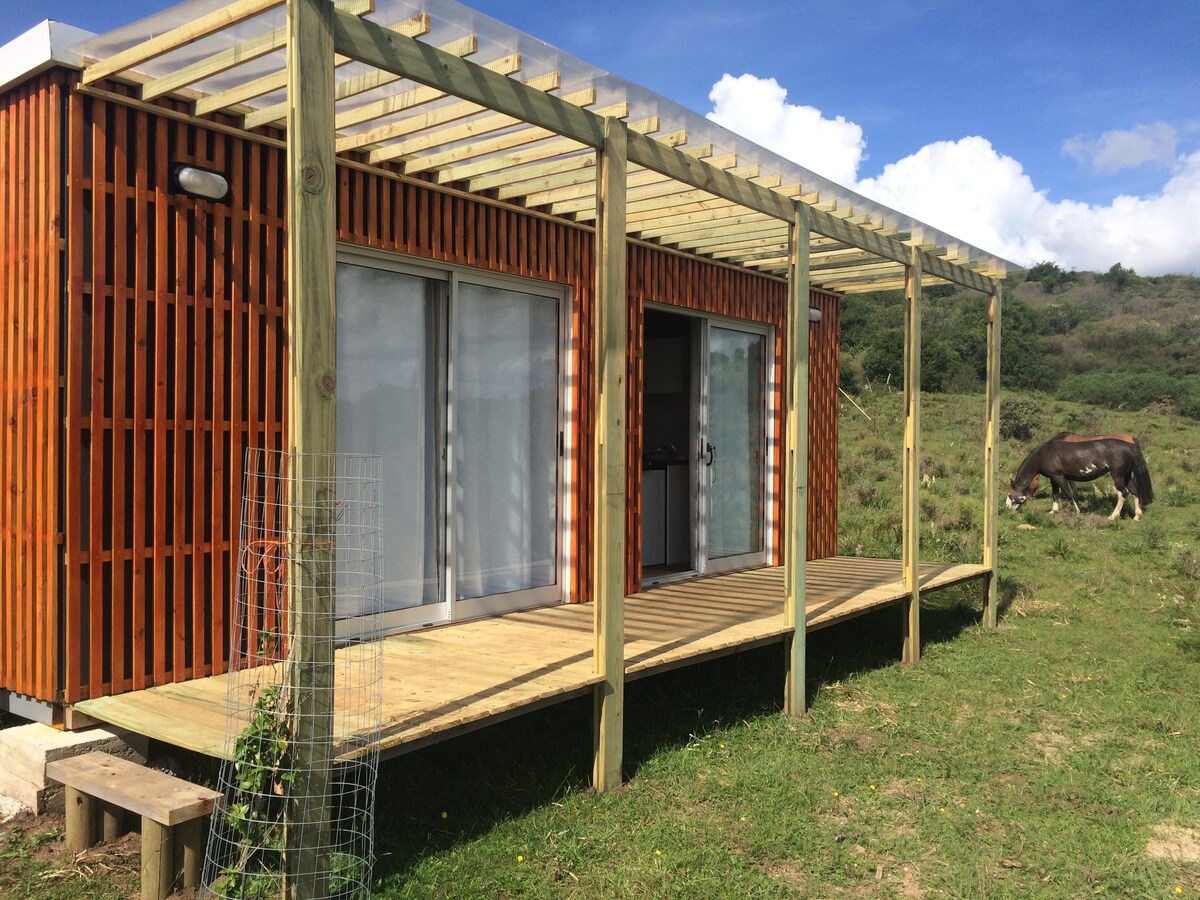 Disfrute la paz y la belleza de las Sierras de Minas mientras se aloja en este tiny house en Vergel de San Francisco, a sólo unos minutos de la ciudad de Minas. Situado en medio del campo, la gran vidriera ofrece una impresionante vista sobre el valle rodeado de cerros, rocas y mangas de piedras antiguas. Es un lugar cómodo y acogedor, cálido en invierno y fresco en verano, que te permite conectar con la naturaleza.