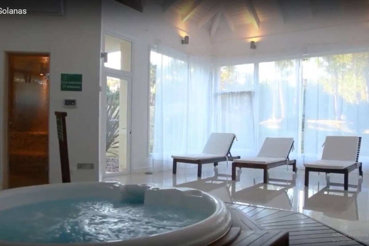 EN MAYO Y JUNIO NO FUNCIONAN LAS ÁREAS RECREATIVAS DEL COMPLEJO (PISCINAS, GYM, CANCHAS, ETC). Apto en Green Park Private Club, dentro de Solanas Vacation Club (Torre L). Rodeado de verde y a minutos de la playa. Ideal para vacaciones en familia o con amigos. Aire puro, descanso, caminatas y diversión. Acceso al gym, piscinas, sauna y las actividades recreativas de Solanas para todas las edades. El acceso a la Crystal Lagoon no está incluido, en caso de querer ir se saca un pase ahí mismo.