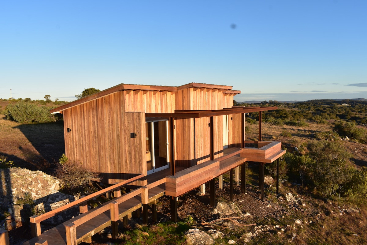 Muy acogedora y moderna casa de campo. Ideal para parejas, familia, amigos... o trabajo remoto, cerca de Montevideo y de Punta del Este. Construida en un alto con espectaculares vistas a las sierras y montes nativos. Lugar mágico y lleno de energía que invita a disfrutar la naturaleza recorriendo senderos, arroyos y cascadas. Con yacuzzi al aire libre para relax y refrescarse en verano con divina vista. A 200 m de la casa hay una cañada con piso de piedra donde se pueden hacer asados y baños