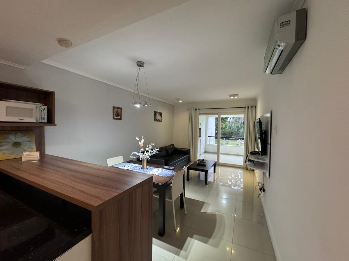 Departamento 45 m2 UBICADO EN PLANTA BAJA (ver foto): estar, cocina y comedor integrado, 1 dormitorio en suite. Salida a un amplio deck y galerías laterales. Dormitorio con cama matrimonial y amplio placard. Cocina, heladera con freezer, anafe eléctrico, microondas, horno eléctrico. Sofá cama en el living. Conexión wi fi de alta velocidad, Smart TV y 2 aires frio/calor. Deck con sillones y mesa, parrilla portátil. La playa está FRENTE a la Casa: solo hay que cruzar la Ruta para llegar al mar.