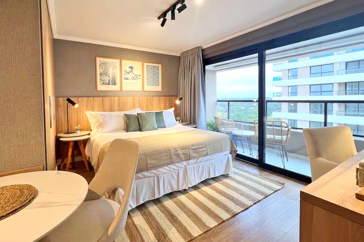 Estudio boutique ideal para parejas y viajeros. Este espacio combina cálido diseño contemporáneo con todas las comodidades de un hotel de lujo. Cama King, menú de almohadas, televisor de 55” con streaming, wifi de alta velocidad y balcón privado. Cocina totalmente equipada y café de cortesía. Cuenta con aire acondicionado, baño privado completo, secador de pelo y caja fuerte. El acceso a todas las amenities está incluido. Servicio de Playa (Pda 16 de la Mansa) en temporada con traslado.-